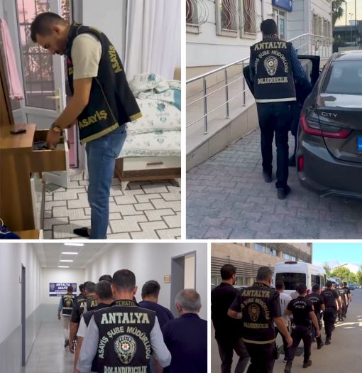 Antalya Emniyet Müdürlüğü, Asayiş Şube Müdürlüğü’ne bağlı Dolandırıcılık Büro Amirliği ekiplerince yapılan çalışmalarda; Yaklaşık 730 Milyon Türk Lirası değerinde mal varlığı bulunan ve mirasçısı olmayan R.Ö. isimli ileri yaştaki müştekinin sosyoekonomik ve kişisel bilgilerini ele geçiren, sahte kimlikle dublör kullanarak aldığı sağlık raporu ile 50 Milyon Türk Lirası değerinde bir gayrimenkulün satışı için gerekli başvurularda bulunan şahıslara yönelik; Antalya merkezli 3 ilde yapılan operasyonlarda 10 şüpheli şahıs kıskıvrak yakalanarak gözaltına alındı.