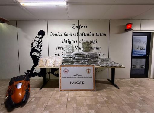 Kırklareli Demirköy ilçesi Karanlıkdere sahilinde Sahil Güvenlik Kolluk Destek Timi (Demirköy/Koldestim) tarafından yapılan devriye faaliyeti esnasında; 1 deniz scooterinde ele geçirilen 6 adet çantada yapılan aramalarda; 53 kilogram skunk maddesi ile 61 kilogram toz esrar maddesi ele geçirildi.