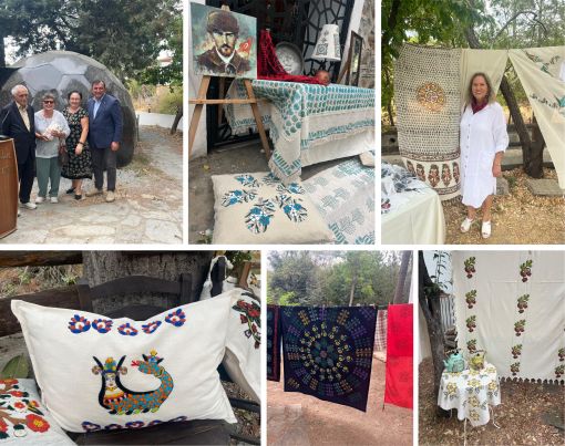 Kurs hocası Kültür Bakanlığı sanatçısı Emel Ardahanlı Tokat’a özgü elmalı baskı yazma tekniğinin tarihçesini ve sergide yer alan diğer eserlerin öykülerini katılımcılarla paylaştı.