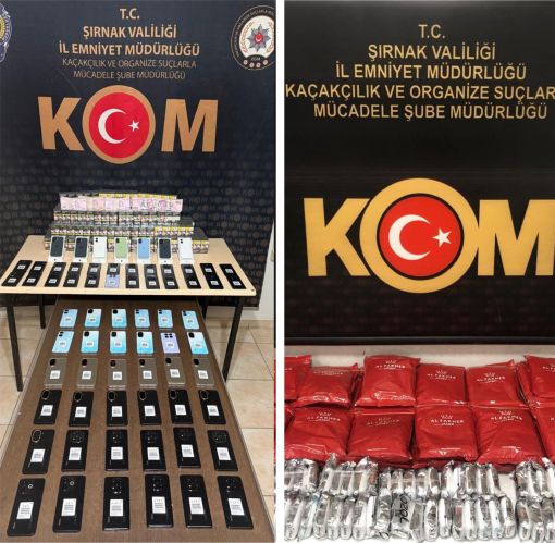 Operasyonda yapılan aramalarda; 600 paket gümrük kaçağı sigara, 67 adet cep telefonu, 39 kilogram nargile tütünü, 100 adet elektronik sigara ve suçtan elde edildiği değerlendirilen 100 bin lira ele geçirildi.