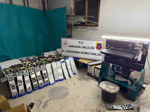 Ankara İl Jandarma Komutanlığı’na bağlı KOM Şube Müdürlüğü, İstihbarat Şube Müdürlüğü ve Keçiören İlçe Jandarma Komutanlığınca koordineli olarak yapılan çalışmalar sonucu Ankara’nın Keçiören ilçesine bağlı Ayvalı Mahallesi’nde bulunan bir iş yerinde, sahte plaka basımı yaparak piyasaya para karşılığı satıldığı tespit edildi.