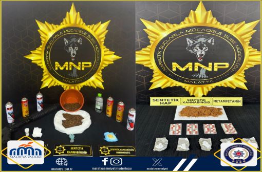 Malatya İl Emniyet Müdürlüğü’ne bağlı Narkotik Suçlarla Mücadele Şube Müdürlüğü [NARKO] ekiplerince zehir tacirlerine yönelik gerçekleştirilen operasyon neticesinde yapılan aramalarda; 623 gram sentetik kannabinoid maddesi, 156 adet sentetik ecza uyuşturucu hap, 7 gram A-M sentetik kannabinoid hammaddesi, 25 gram metamfetamin maddesi, 1 adet ruhsatsız tüfek ele geçirildi.