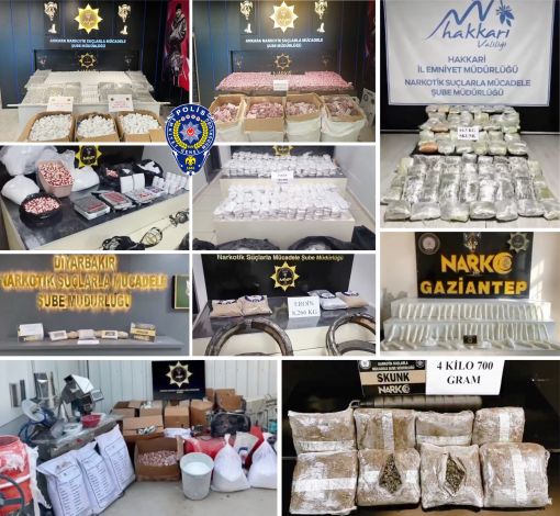 Operasyonlarda yapılan detaylı aramalarda; 767 kilogram uyuşturucu madde ile 3 milyon 340 bin 726 adet sentetik ecza uyuşturucu hap ele geçirilirken, 1.319 şüpheli şahıs yakalanarak gözaltına alındı.